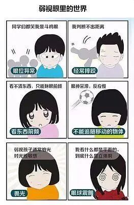 4.视物情况不同:近视常是看近清楚而看远不清楚,弱视是无论看近还是看远均不清楚;